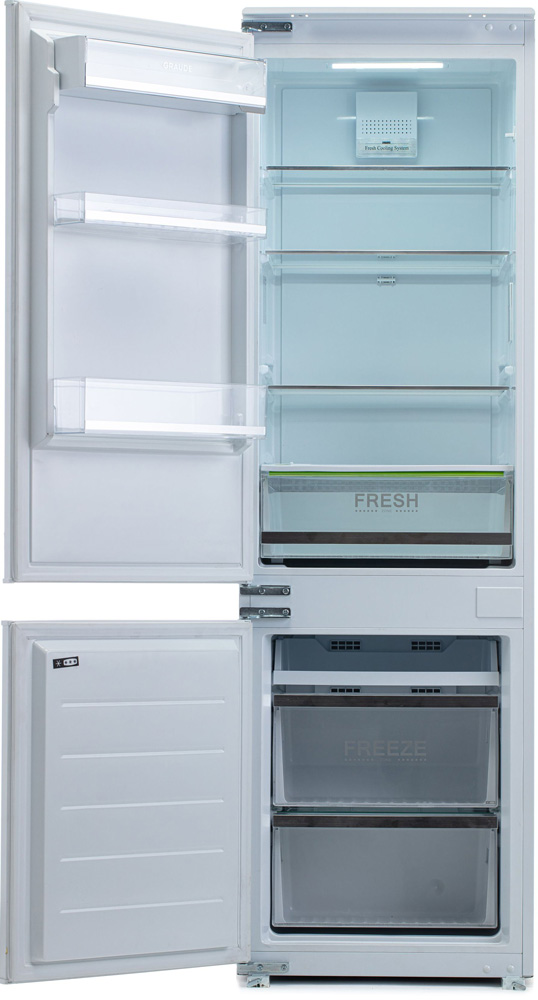 Встраиваемый холодильник Graude IKG 180.3 представлен в белом цвете. Благодаря универсальному исполнению модель подойдёт к интерьеру любой кухни. Одно из качеств, которое она имеет — это технология NoFrost, которая предотвращает образование наледи внутри прибора.