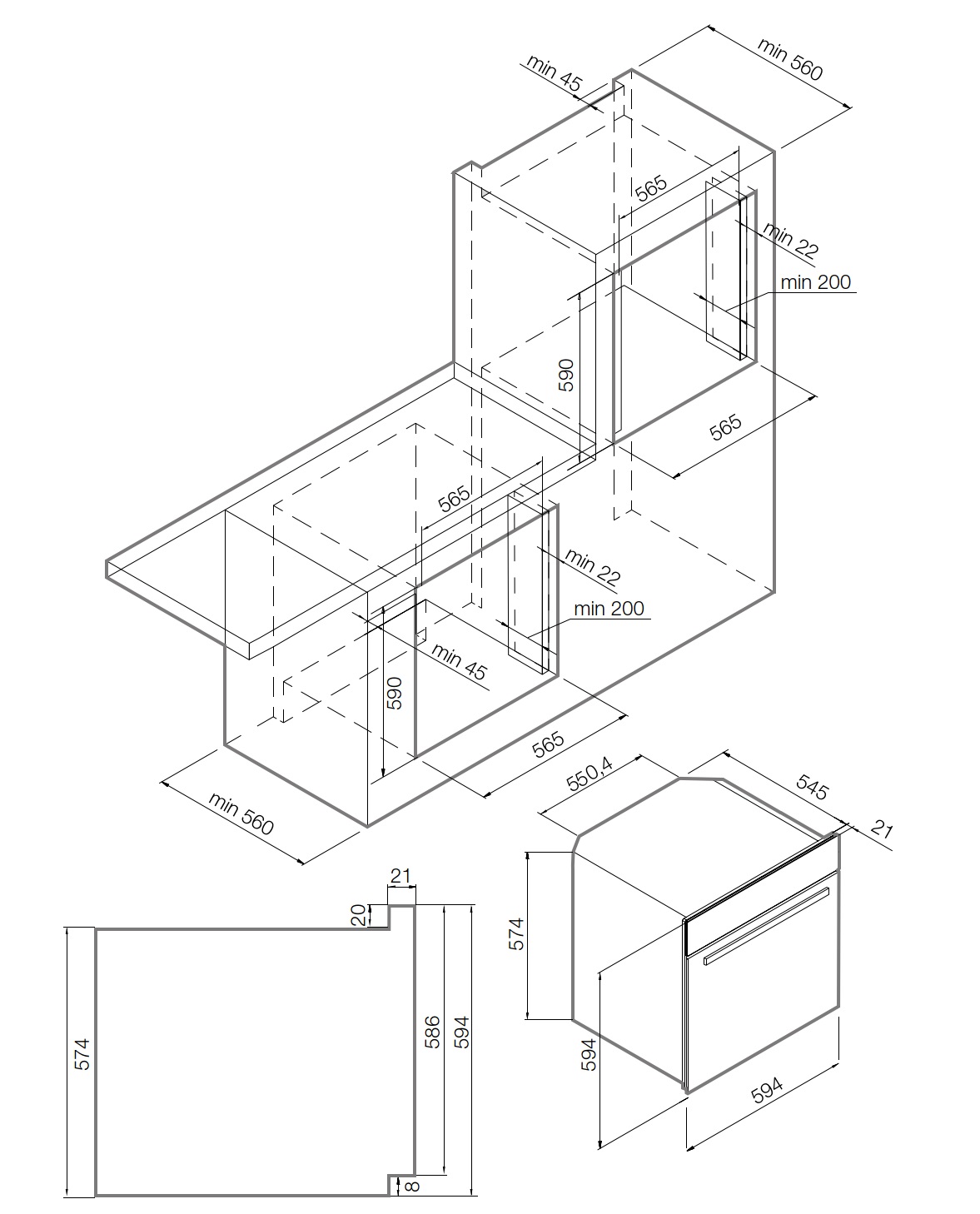 Схема встраивания 1 для духового шкафа Graude BE 60.3 SE