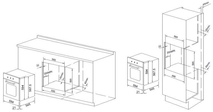 Схема встраивания 2 для духового шкафа Graude BE 60.3 SE